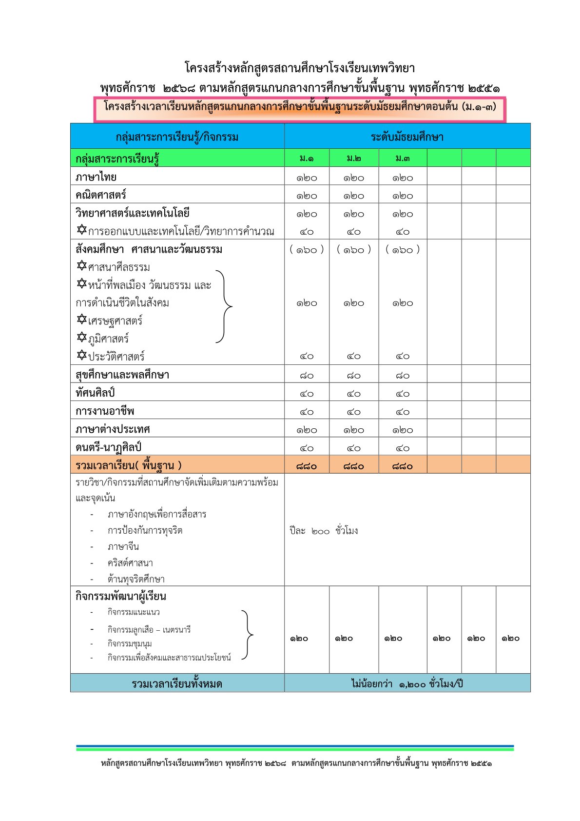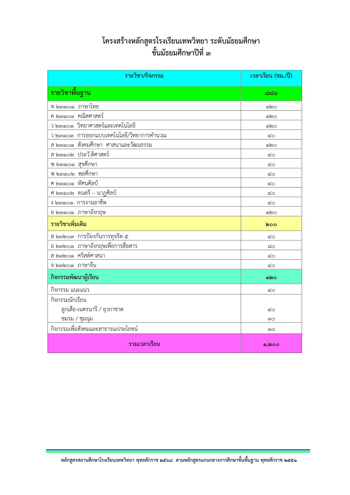 โครงสร้างหลักสูตร มัธยมศึกษาปีที่ 3
