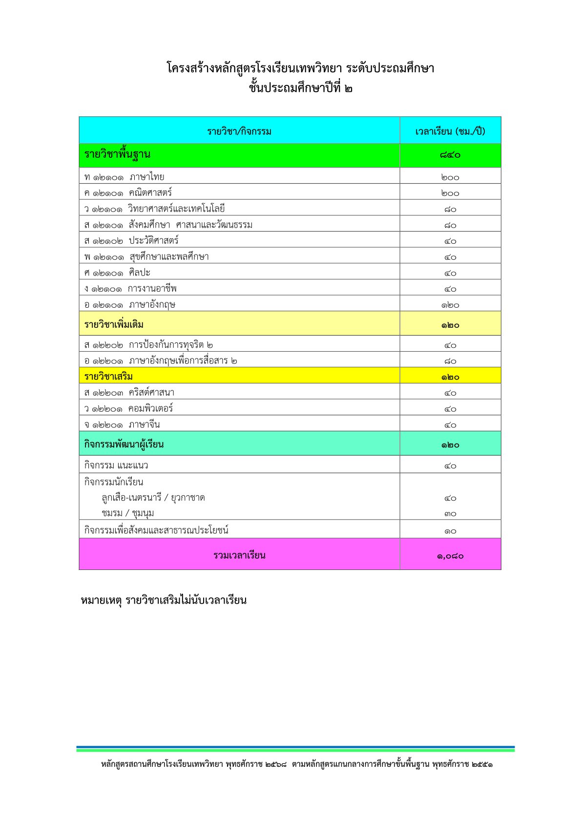 โครงสร้างหลักสูตร ประถมศึกษาปีที่ 2