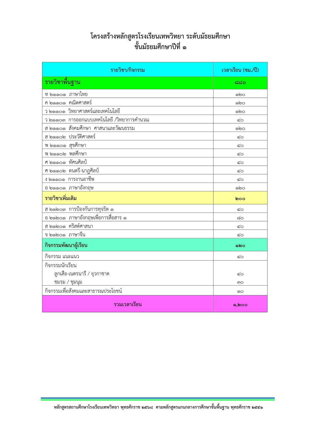 โครงสร้างหลักสูตร มัธยมศึกษาปีที่ 1